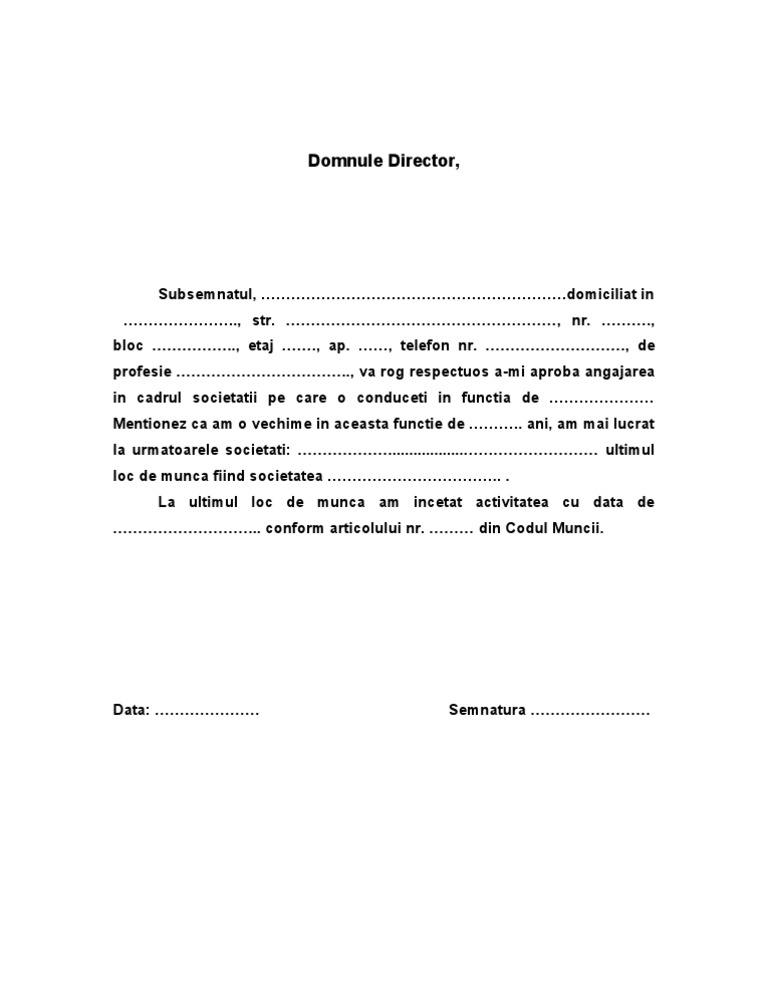 In ziua de astazi modelul de cerere in vederea angajarii desi este foarte solicitat cautat si descarcat pe internet consideram ca acesta isi gaseste utilitatea in primul rand in cazul firmelor care nu organizeaza interviuri de angajare sau in situatia persoanelor care au mare nevoie de un job. De cate ori publicam ceva ajunge mai repede la tine decat la cei care nu sunt abonati. Model cerere restante december 2019 315. Cerere de angajare doc domnule director.