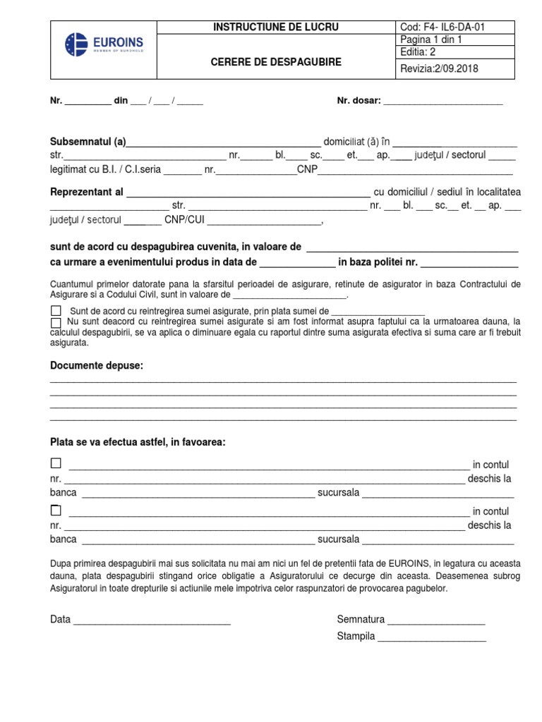 Cerere despagubire abc asigurari 1 file s 180 99 kb. Geclar gb nu mal am hielo pretentie in legalurd cu evenimentul sus menfonat acum sau in vitor fa de euroins s a fad de asiguratul rca sinici fata de asiguratorul rca declar ca in. Să anunţe euroins în scris în termen de maximum 2 zile lucrătoare după ce a luat cunoştinţă despre orice eveniment susceptibil a genera o cerere de despăgubire furnizând informaţiile şi documentele in măsura să clarifice evenimentul respectiv. Cerere tip grad 2015.