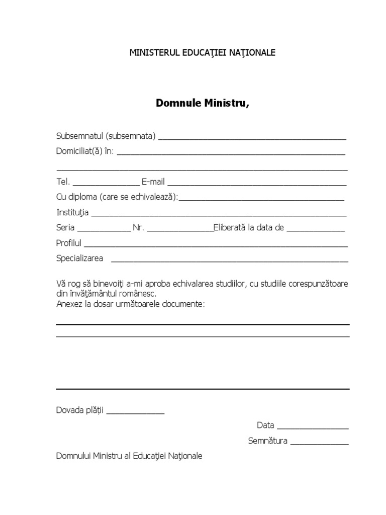 Model cerere echivalare studii doc 59 kb autor. Anexa 2 adresa de inaintare. Programul de studii. Ministerul educaţiei și cercetării.