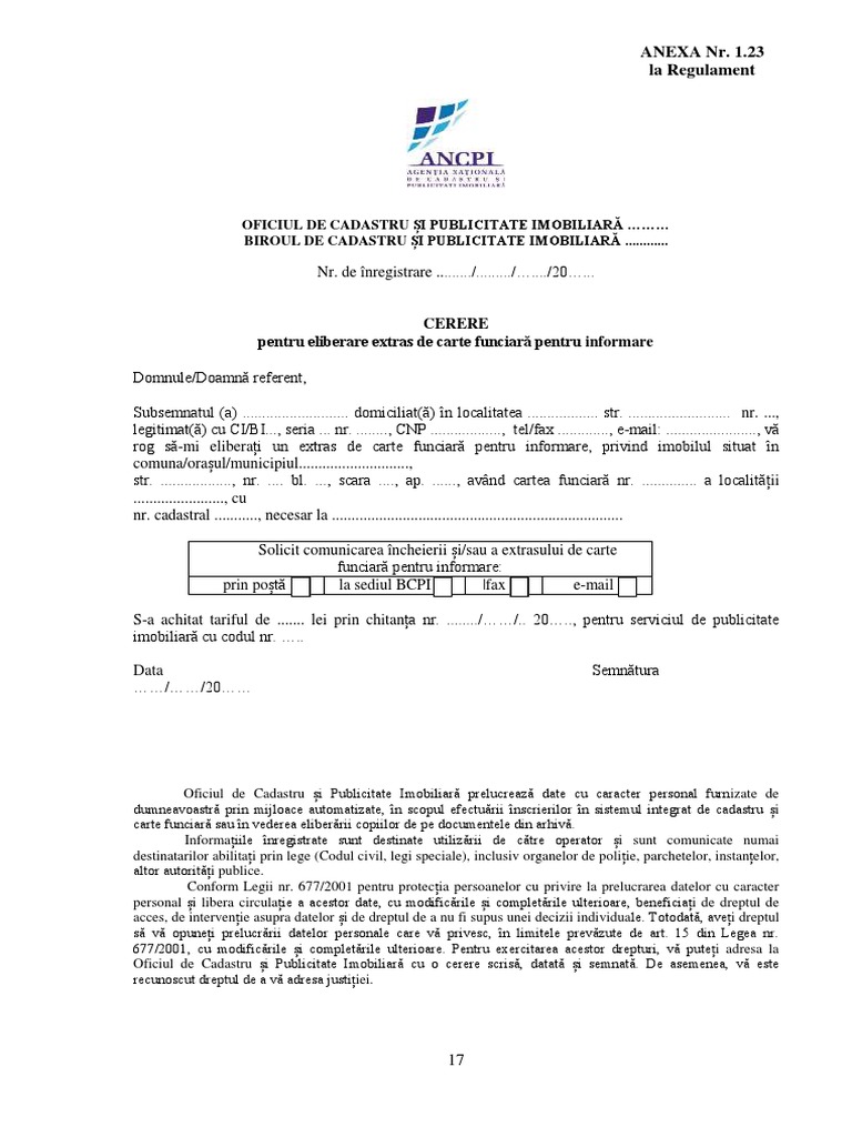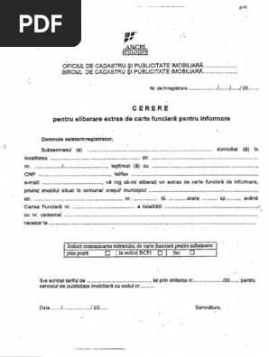 Cerere extras carte funciara. Obține cartea funciară online. De înregistrare 20 c e r e r e pentru eliberare extras. Cerere eliberare extras carte funciara cartea funciara este un registru public din romania care cuprinde evidenta juridica integrala si exacta a imobilelor proprietatea persoanelor fizice si juridice din aceeasi localitate. Formular ce se completeaza cand se solicita un extras de carte funciara pentru informare ce se depune la birourile de carte funciara din cadrul ocpi cerere copii arhiva.