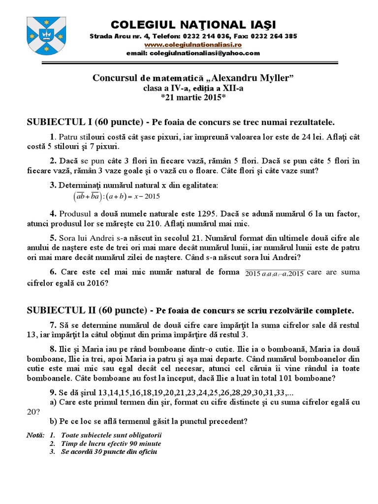 Filtru titlu arată nr. Cerere fise anexe 2019 2020. Colegiul național mihai eminescu iași str. Aproape jumătate dintre cei 393 de elevi care au susţinut proba scrisă la concursul de matematică alexandru myller au reuşit să obţină punctaj maxim.