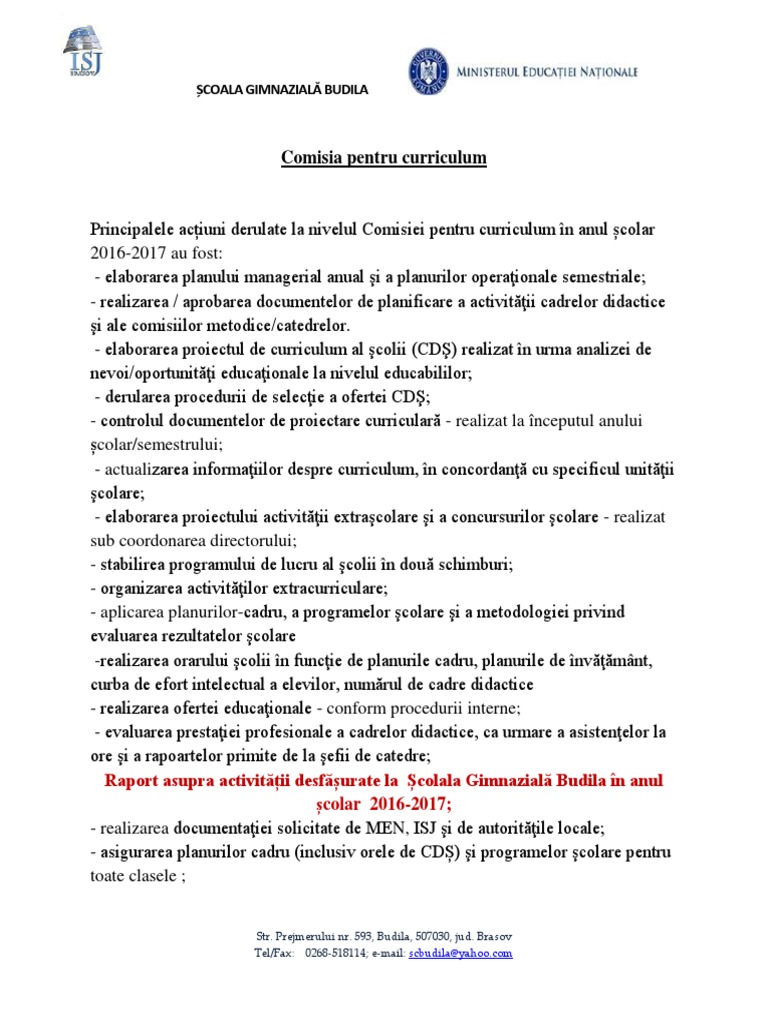 Comisia pentru curriculum document. A comisia pentru curriculum este alcatuita din responsabilii de arii din scoala. Documente management şcolar. Raport cds clinciu 2019 2020. Anexa 6 regulamentul de organizare și funcționare.