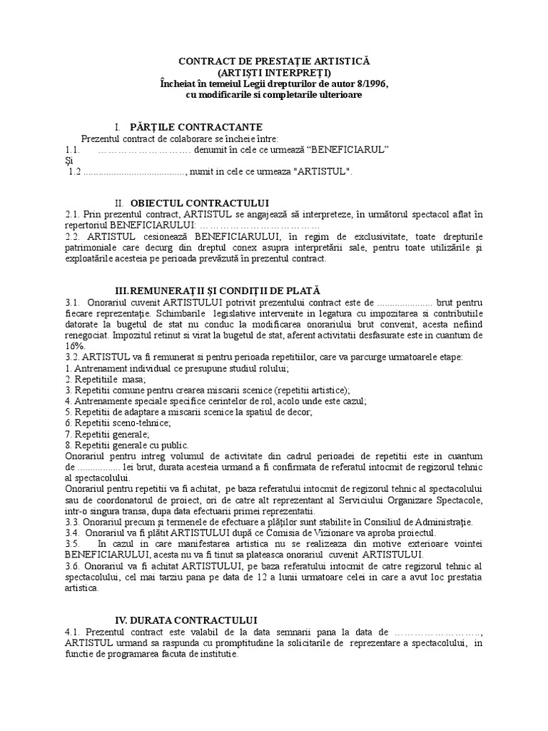 Contractul de asistent de regie artistica nu detine dreptul de a cesiona aceste drepturi nefiind autor. Acest site foloseste cookie uri conform noului regulament de protectie a datelor gdpr pentru a va asigura cea mai buna experienta online in esenta cookie urile ne ajuta sa imbunatatim continutul de pe site oferindu va dvs cititorul o experienta online personalizata si mult mai rapida. Copie act de identitate copie dupa contractul semnat de ambele parti implicate si declaratia declaratie de inregistrare fiscala declaratie de mentiuni pentru persoanele fizice romane. Practic m a amanat m a indus in eroare m a mintit ca imi va face contract de drepturi de autor.