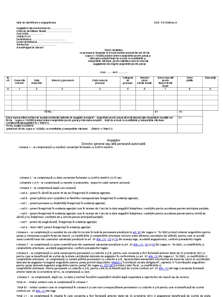 O 4 tabel nominal lunar. Subvențiile pentru angajarea șomerilor de peste 45 de ani și pentru angajarea șomerilor aproape de pensie. Se poate incheia cu ajofm conventie pentru subventii incadrare persoane peste 45 de ani in situatia in care in ultimi 2 ani persoana respectiva a lucrat ca zilier la societatea care acum l a angajat cu contract de munca pe periada nedeterminata. Subventia se acorda incepand cu data incheierii conventiei intre angajator si agentie suma lunara se acorda angajatorilor proportional cu timpul efectiv.