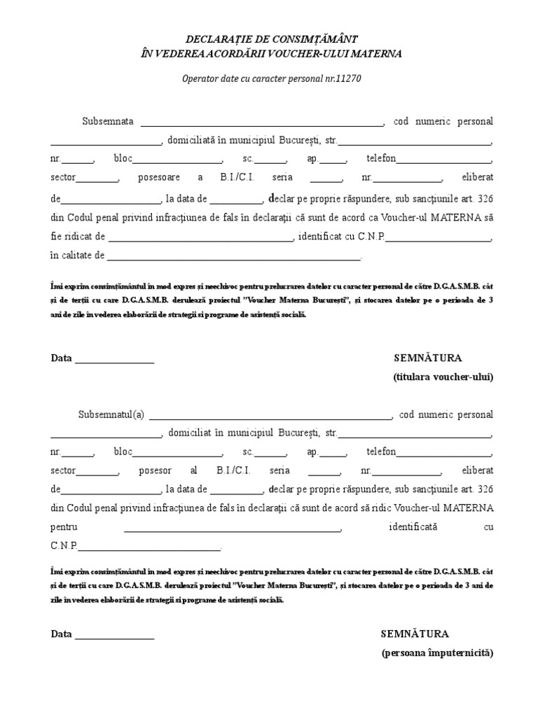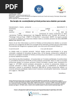 Declaratie De Consimtamant Privind Prelucrarea Datelor Cu Caracter Personal