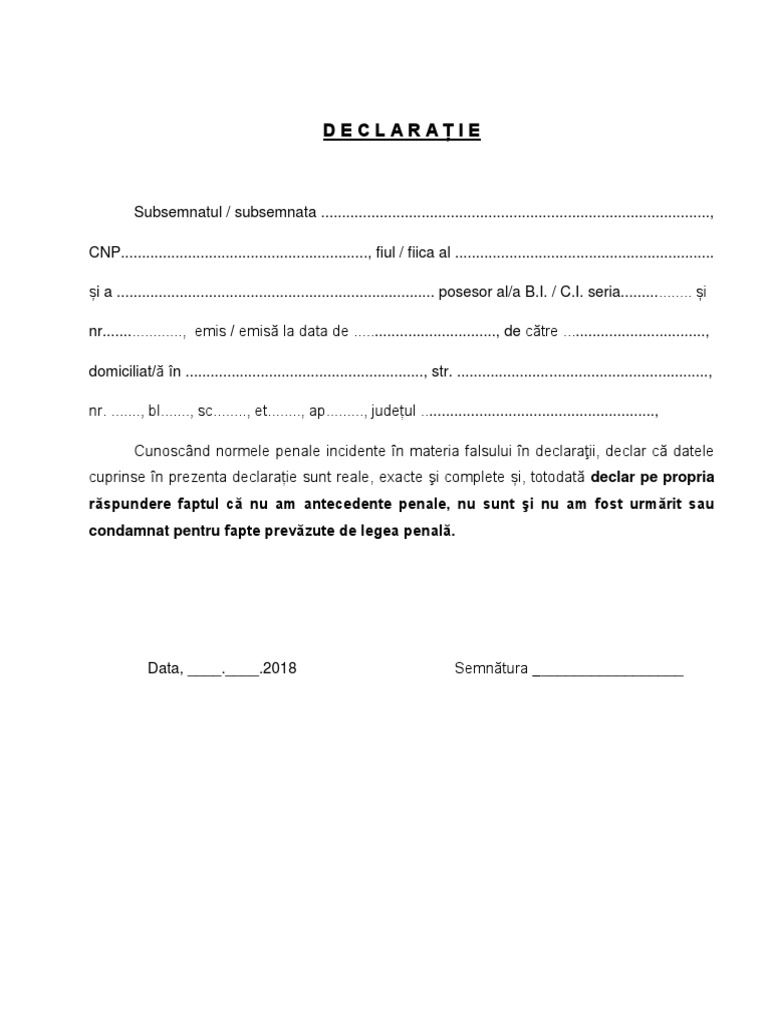 Declaratie Pe Propria Raspundere Ca Nu Am Antecedente Penale