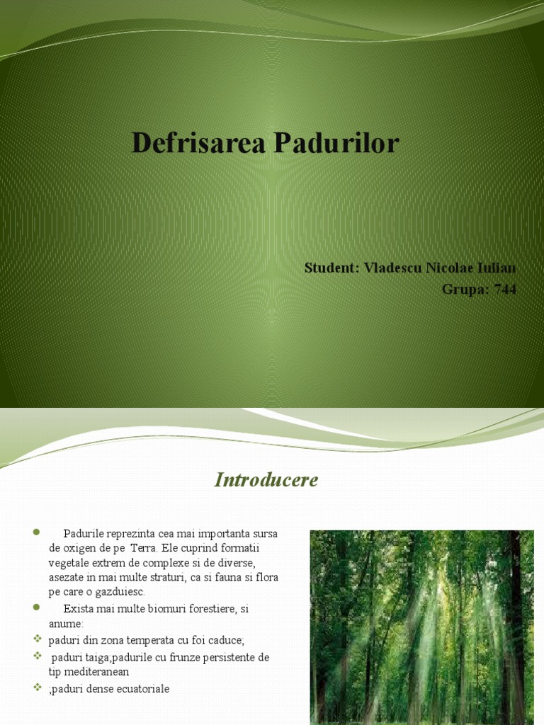 Defrisarea rolul padurilor in protectia solului. Defrisarea padurii ecuatoriale 5 defrisarea padurilor si poluarea sunt principalele probleme de mediu resimtite de romani 6. Defrișarea pădurilor în românia este un proces economic care s a manifestat din cele mai vechi timpuri lemnul fiind o resursă importantă. Romania avea in 1800 8 5 mil.