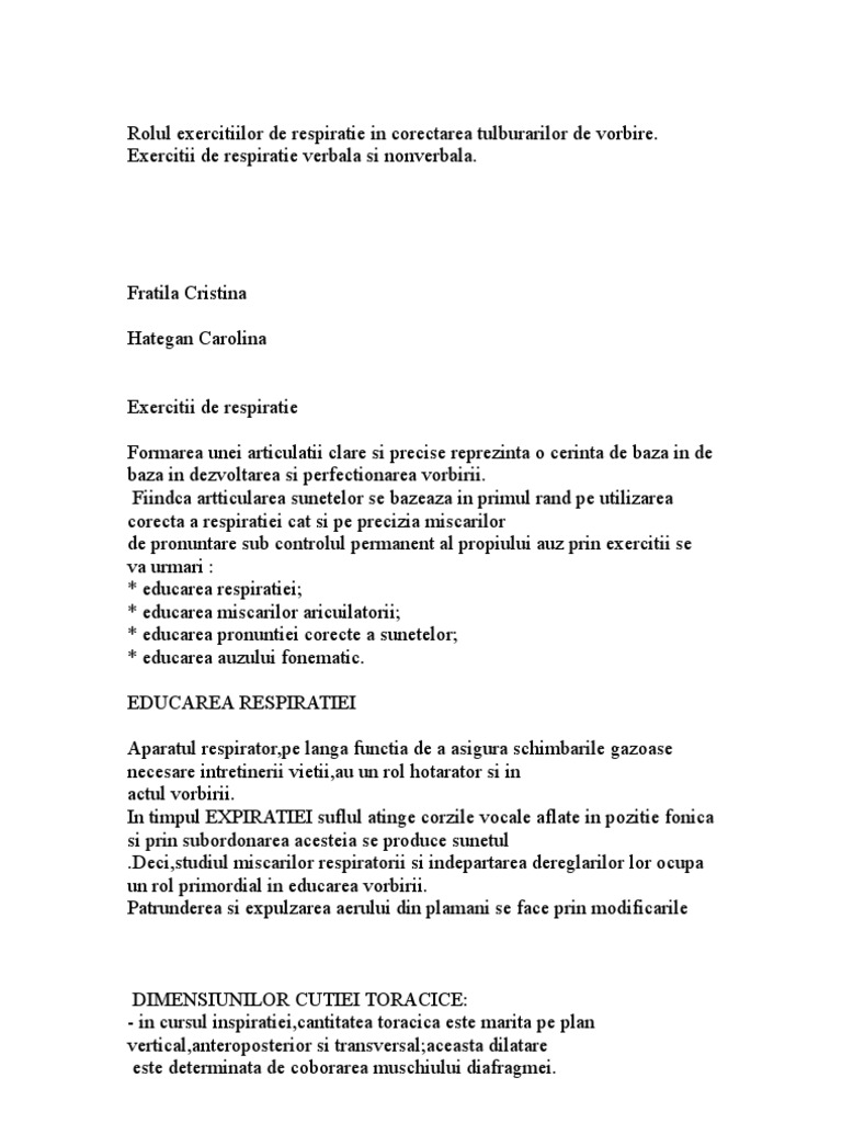 Rolul Exercitiilor De Respiratie In Corectarea Tulburarilor De Vorbire