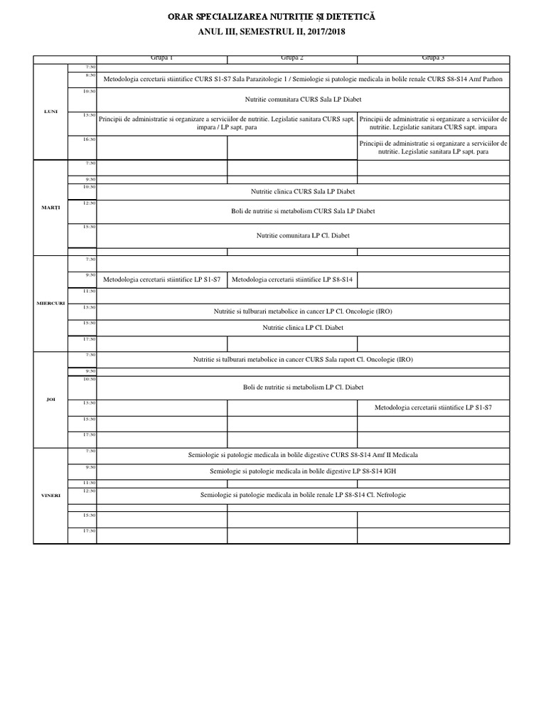 Specializarea nutriție și dietetică din cadrul domeniului de studii universitare de licenţă medicină cu o durată de 3 ani pregătesc profesioniști capabili să intervină în domeniul nutriției pentru a satisface nevoile indivizilor grupurilor și populațiilor și în interesul promovării restabilirii și menținerii sănătății. Pentru a realiza acest lucru vor explora pe. Concomitent aceasta facultate a fost un veritabil for de stiinta care prin numeroase personalitati de marca c i. 18 06 2020 ora 16 00 nd an 1 fiziopatologie an i nutriţìtie si dietetica.